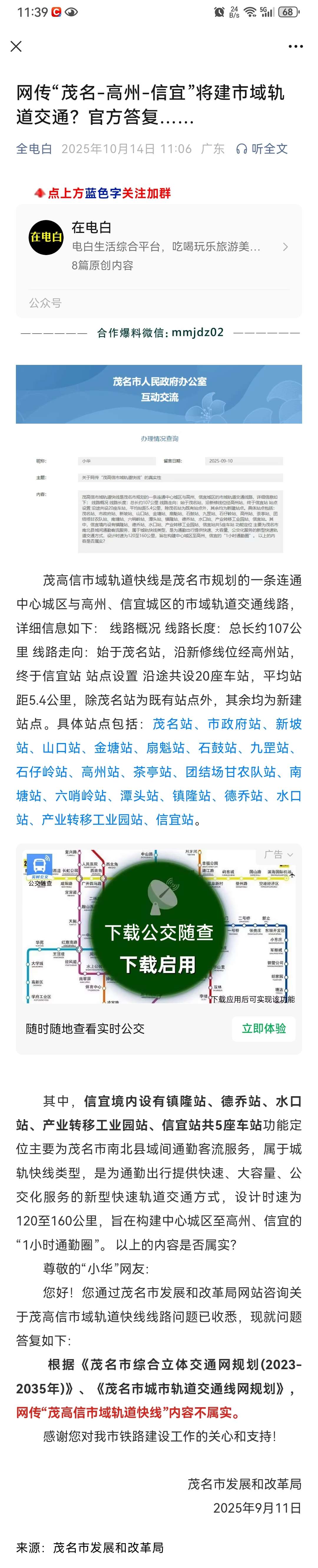 而且是在茂名规划的4条线还没建的情况下,想抢先作为“茂名轻轨一号线”先建