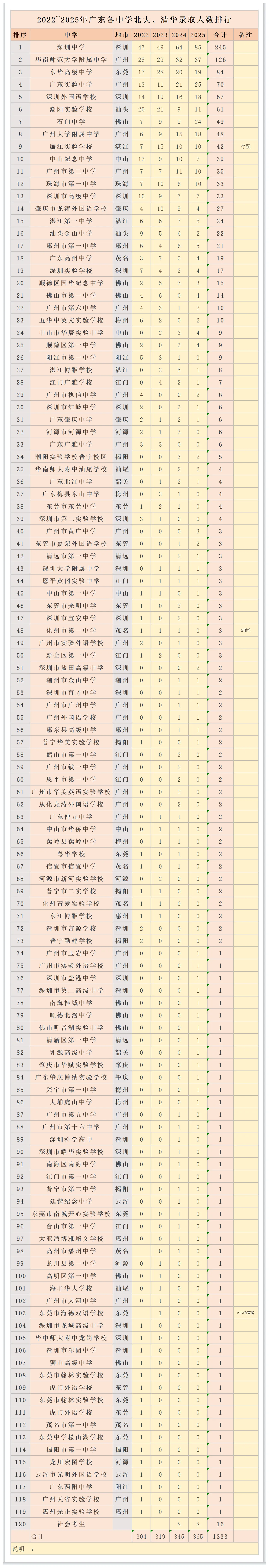 小峰哥 发表于 2025-10-20 09:53 近几年,深圳中学的实力已经在广东实现断档领先,近四年北清录取人数一年比一年多,并且领先优势越来越大。 ...