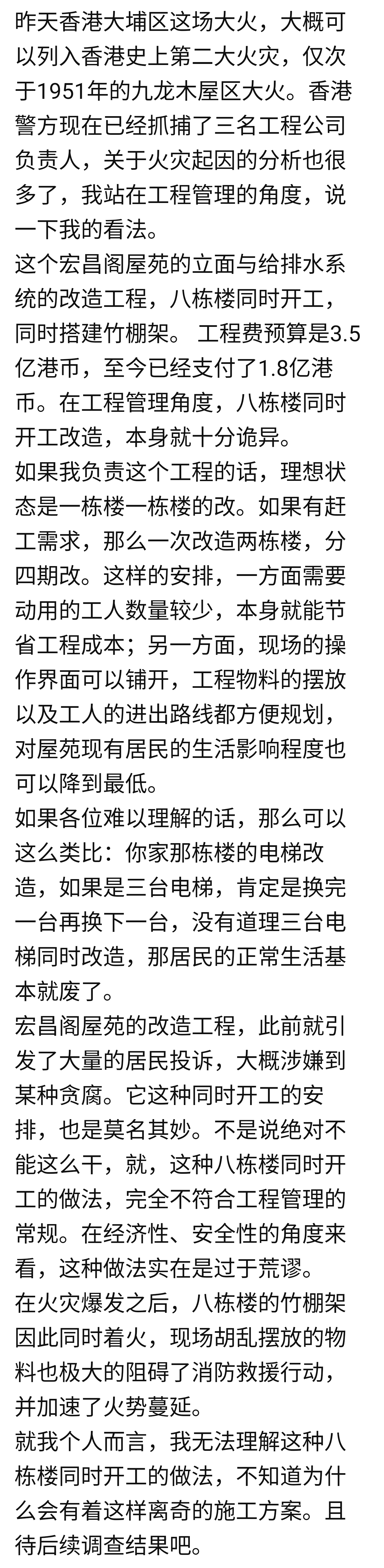 帮了别人害了自己的典范,有视频显示内地装修工人吹烟引燃了外围的塑料网罩。