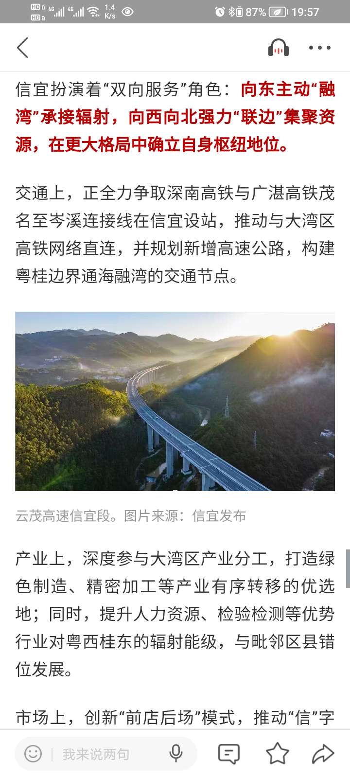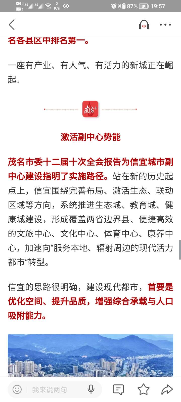 最近市委市政府已经把信宜定为茂名城市副中心来发展规划,我认为主要有两个因素:一是信宜市离茂名比较远,而且有发展潜力,二是茂名已实施了“两轴两圈”的发展战略,已经把高州和化州这个城市发展统一规划建设了,在不久的将来一定会将高州、化州撤市设区,贯彻落实省委省政府的指示要求:建设茂名特大型城市![合十][爱心][合十]。