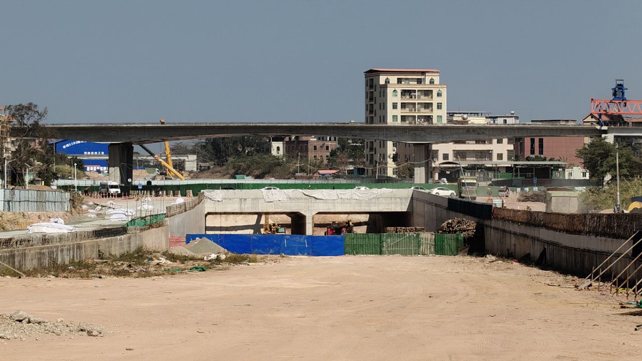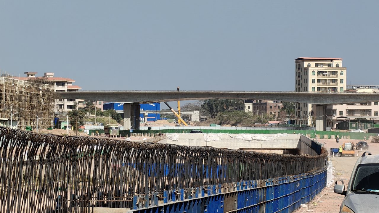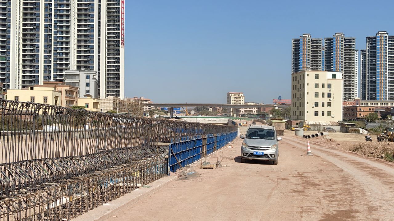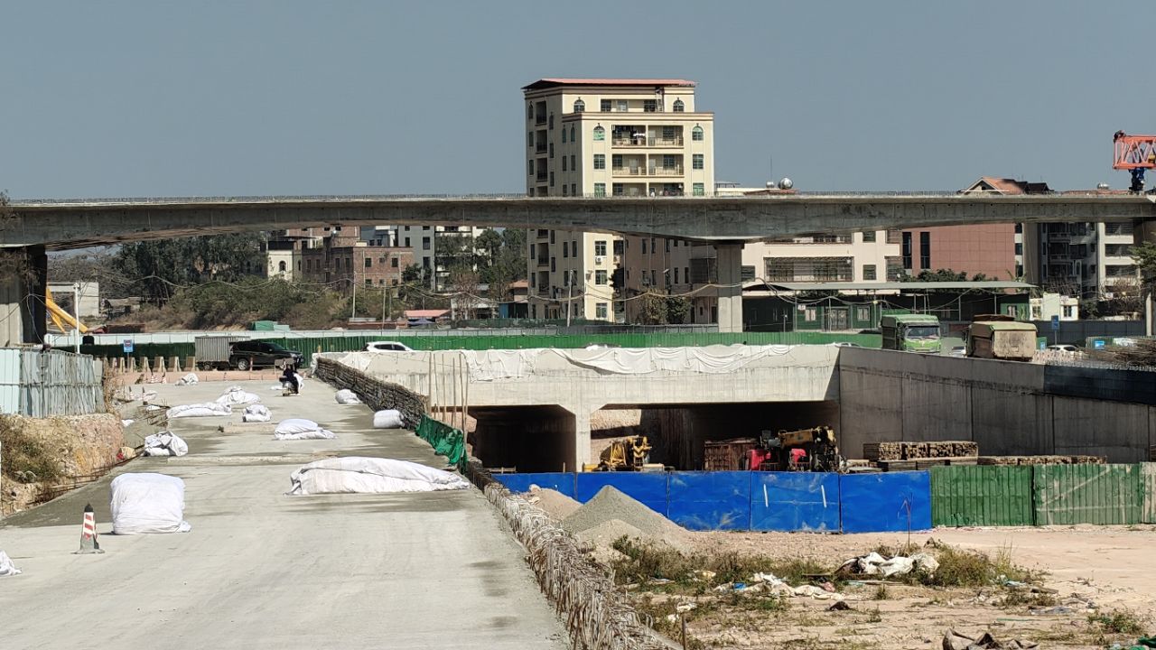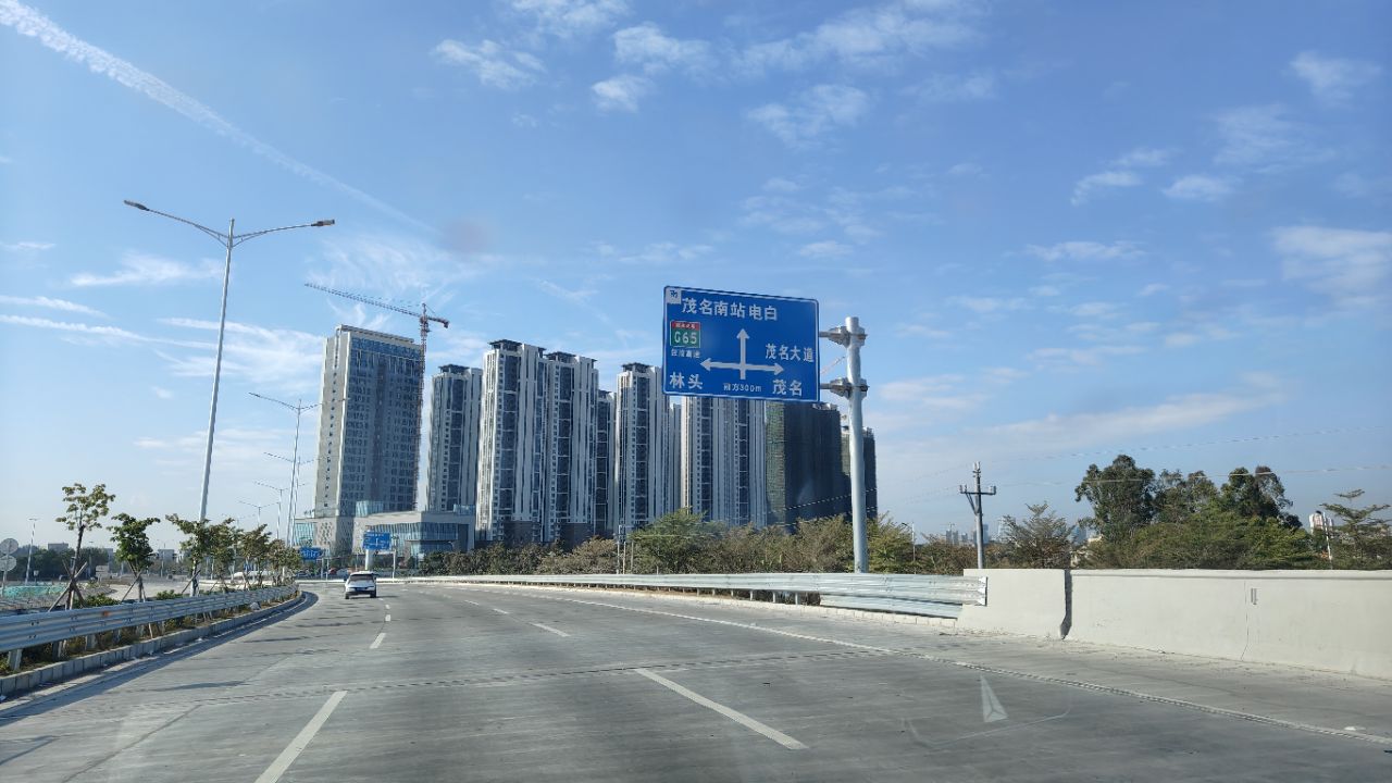 再看看东环大道一期,从妇幼到茂高快线立交,整条路基本成型,几大节点工程如村道柑木冲村下穿东环大道隧道,东环大道下穿茂东快线隧道,桂樟岭村下穿东环大道隧道,跨茂电干渠高架桥,茂高快线立交全部也打通,到时全线通车指日可待。令人惊喜的是,东环大道也配备中间绿化带。最近很多网媒都在报道市民大道三层立交的成型,其实在我心目中,茂东快线和东环大道的集地下,地面,地上才是最为复杂的一个桥隧工程。
